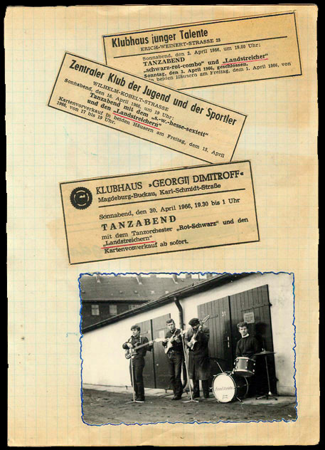 ROCKMUSIKER-JUGENDSÜNDEN Landstreicher, Magdeburg Hans-Georg Güttler, g, p, voc Hans-Jürgen Schmolenski, g, voc Peter Sienkiewicz, b, voc Wolfgang Walter, dr Fotograf unbekannt E-Mail an:p@sienkiewicz.de In Privatarchiven wiederentdeckt!